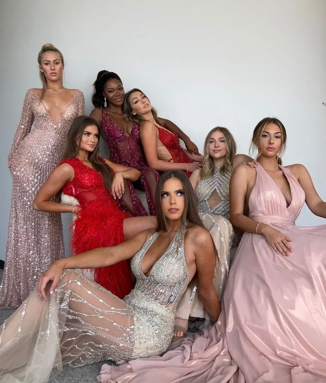 Luxury gowns, embellished dresses, modest evening styles, structured jumpsuits